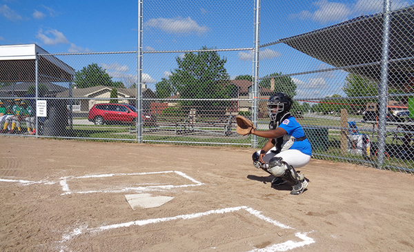 This catcher at Baldwin Hills FastPitch Softball fills the frame much better. There's not much in the background that's distracting, and you can see her eyes watching the ball.