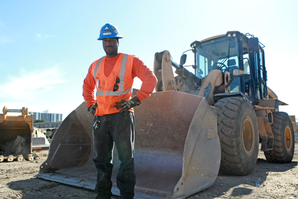 When I took this photo, I felt that the construction worker was not large enough, while the vehicle was.