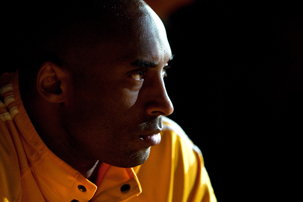 In this photo by Jeff Lewis, Kobe Bryant fills up the bulk of the frame. Since it's a close up, it's okay to have the frame cut off the top of his head.