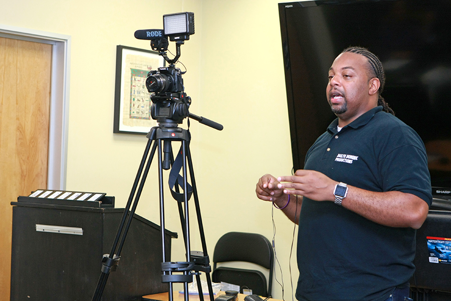 Wedding videographer Brandon Tanori presents at the camera club meeting.
