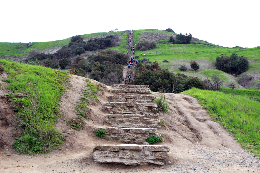 There are two ways to the top. The dirt trails that loop around the hill, or the more direct route; straight up the Culver City Stairs. Photo by Jason Lewis