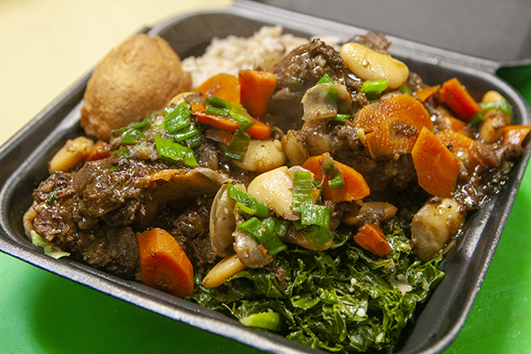 Jammrok Jerk Chicken’s most popular dish is, like most Jamaican restaurants, jerk chicken. They also have oxtails, curry goat, curry chicken, brown sue chicken, rice and peas, ginger coconut rice, cabbage and carrots, garlic kale, and meat patties. On weekends they have yellow tail snapper. They also have vegetarian options.
