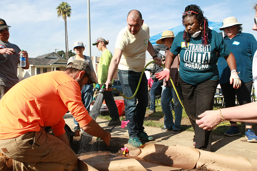 The workshops teach people how to remove grass turf and replace it with sustainable landscaping, which can save money and water.