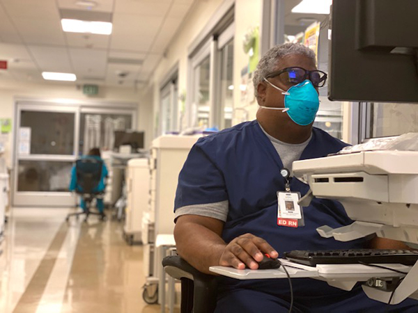 Initially working on the front lines was very daunting because of all of the uncertainty of how the virus was being transmitted and daily updates/changes to stay ahead of the surge. In the first few weeks of the epidemic we nurses worried about not having the proper PPE or equipment to stay safe and not transmit it to our loved ones. As this crisis has gone on we have developed standards of practice that we believe will keep the community, our families and lastly ourselves safe as we treat our patients. The question is often asked if I am scared to come work now? My answer has been “that this is what I signed up for, I am here in a time of need for someone in distress.” It makes it a lot easier to do this with all of the support from my fellow nurses, techs, patient care technicians, and our environmental services staff.