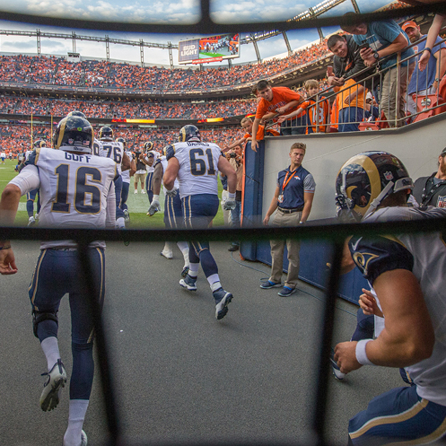 Sports photographer Jeff Lewis keeps the LA Rams in focus