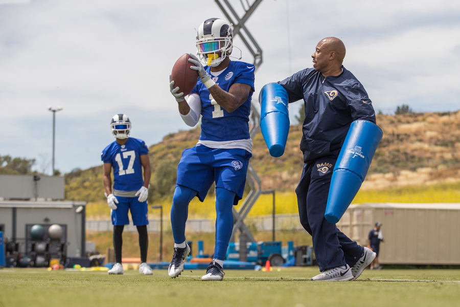 Eric Yarber started out playing football at Crenshaw High School and made it all the way to the NFL. He’s now the Los Angeles Rams’ wide receiver coach. Photos by Jeff Lewis/Los Angeles Rams