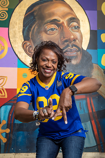 Recently the Rams featured South Los Angeles native Sharon Ransom, so Lewis chose a few recognizable locations near Crenshaw Boulevard and Slauson Avenue.